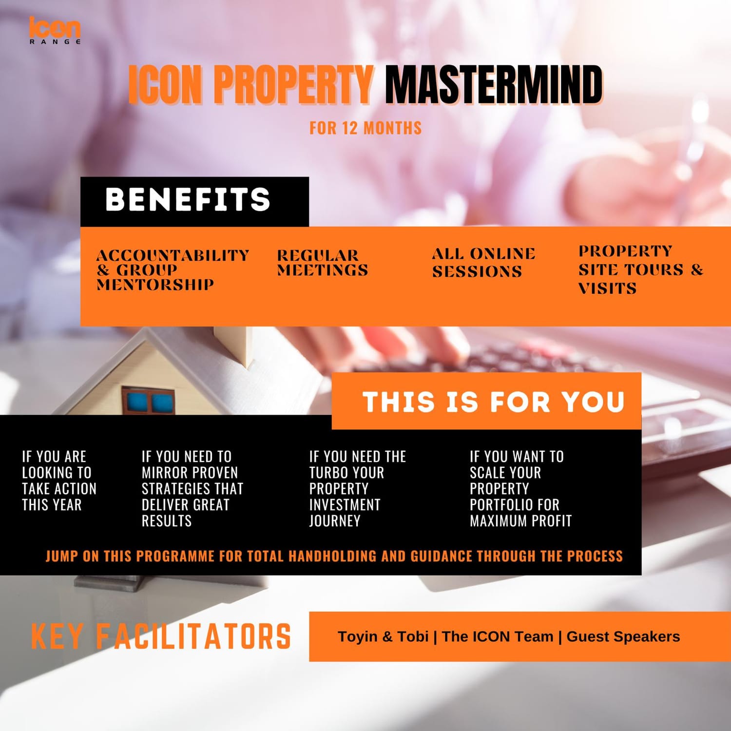 This 12 MONTHS IN-DEPTH PROPERTY INVESTMENT MASTERMIND PROGRAM helps you experience a Deep-dive into the world of property investment led by Toyin & Tobi who are experts with over 10 years of successful investing.